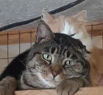 TUC is Chelsey's BFF and fellow pillow-sharer. It is always great when two of our permanent residents find their forever friend too! As you can see, they both enjoy a good soft bed and looks like they both enjoy a good nosh of food now and then!